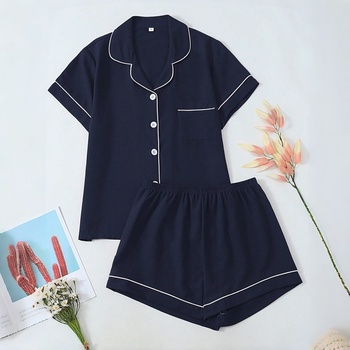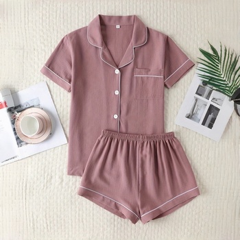 Conjunto de pijama informal con botones, manga corta, parte inferior de cintura elástica, transpirable, 3 piezas para verano, Otoño, estaciones lisas