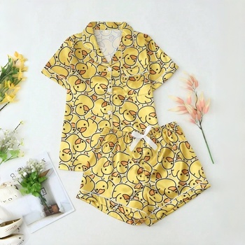 Conjunto de pijama con solapa de pato amarillo ecológico moderno hecho a medida suave cómodo transpirable verano cintura elástica Animal 6XL frontal