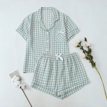 Conjuntos de pijamas de mujer de franela a cuadros de algodón 100% cómodos de alta calidad con diseño OEM, conjunto de pijamas de salón suave Shortdoll